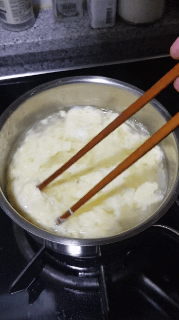 젓가락 등으로 살짝만 저어주고 그대로 익혀주세요.